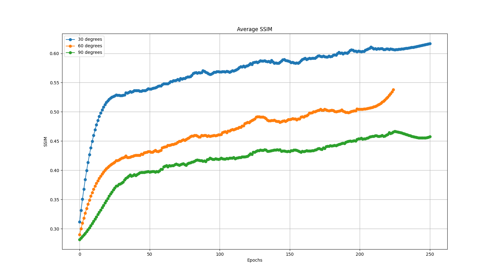 We further measure PSNR and SSIM as measures of reconstruction quality during training. The curves show the superiority of the quality as you reduce the viewing range.